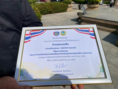 นางวิไลลักษณ์ คำมูลอินทร์ พัฒนาการอำเภอห้วยกระเจา พร้อมด้วยเจ้าหน้าที่พัฒนาชุมชนอำเภอห้วยกระเจา ร่วมแสดงความยินดีกับ "ตำบลสระลงเรือ" นำโดย ท่านกำนัน สมยศ เชาว์รักษ์ และผู้นำตำบลสระลงเรือ ในโอกาสที่ได้รับรางวัลชมเชย ประเภทตำบลเข้มแข็งตามหลักปรัชญาของเศรษฐกิจพอเพียงดีเลิศ ระดับจังหวัดกาญจนบุรี ตามโครงการคัดสรรกิจกรรมพัฒนาชุมชนดีเด่น ประจำปี พ.ศ. 2568